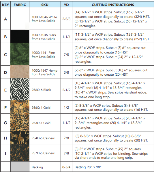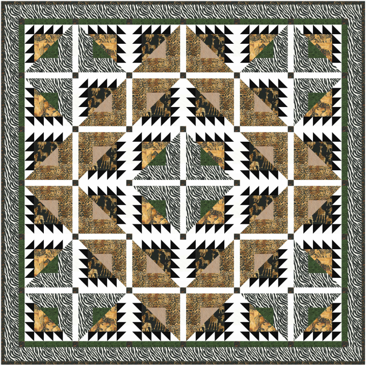 With a generous finished size of 90” x 90”, this quilt makes a beautiful bed quilt or statement piece for a modern home. The strong geometric layout mimics movement and direction just like animal tracks crossing the savanna while maintaining a clean and structured appearance.