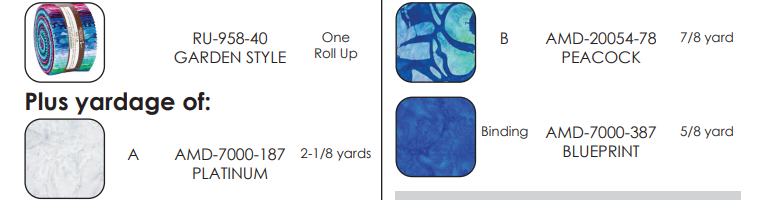Fabric B (Peacock) – ⅞ yard (outer borders)