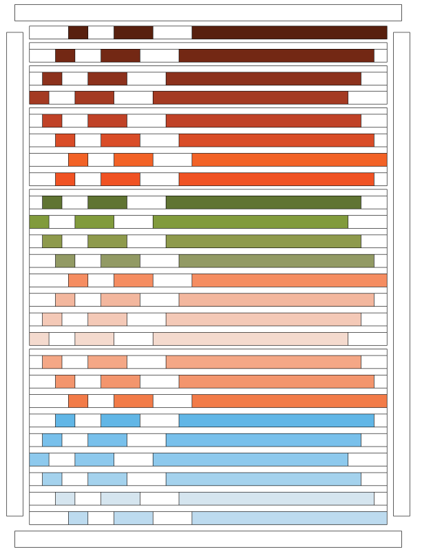 • 25 different strips, cut into three pieces each: