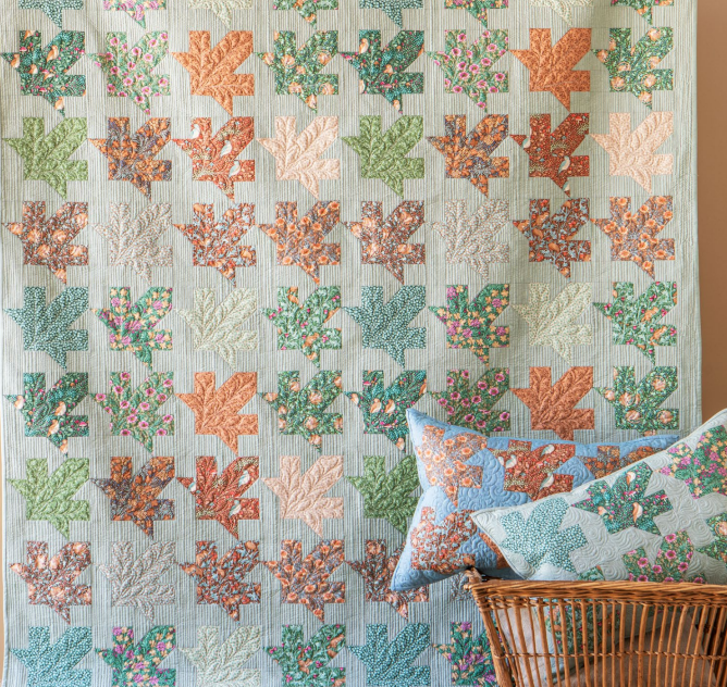 The background fabric creates the structure of the quilt, while the prints bring the leaf shapes to life.